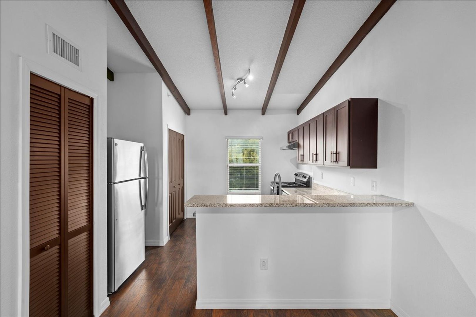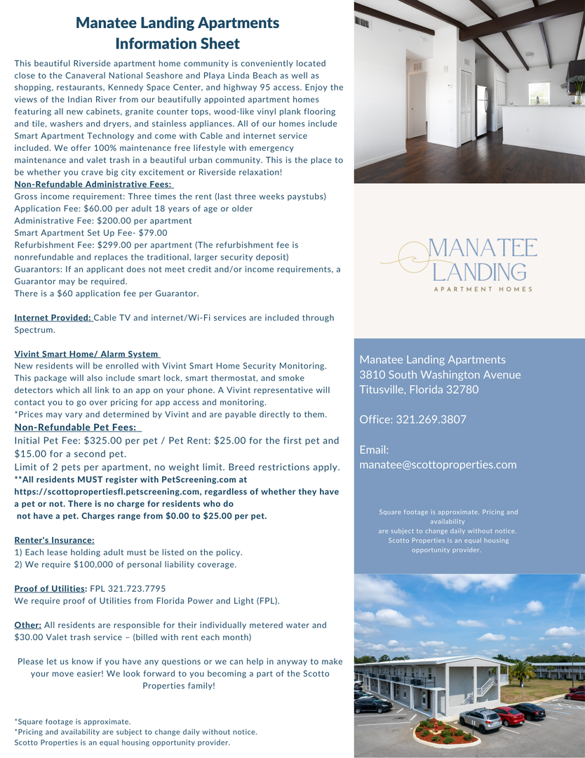 This beautiful, upstairs 2 bedroom, 1 bathroom apartment home is conveniently located close to the Canaveral National Seashore and Playa Linda Beach as well as shopping, restaurants, Kennedy Space Center, and highway 95 access. Enjoy the views of the Indian River from our beautifully appointed apartment homes featuring all new cabinets, granite countertops, vaulted ceilings, wood-like vinyl plank flooring and tile, washers and dryers, and stainless appliances. All of our homes include Smart Apartment Technology and come with Cable and internet service included. We offer 100% maintenance free lifestyle with emergency maintenance and valet trash in a beautiful urban community. This is the place to be whether you crave big city excitement or Riverside relaxation!