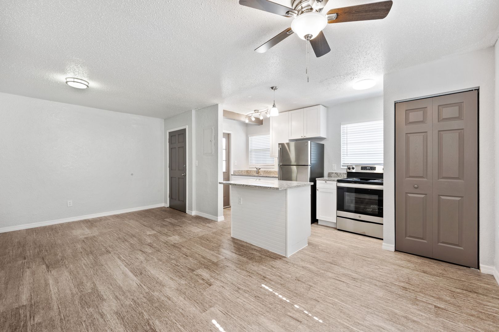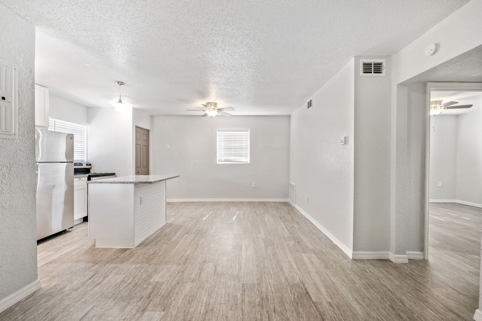 This beautiful 2 bedroom, 1 bathroom apartment home is conveniently located close to the Canaveral National Seashore and Playa Linda Beach as well as shopping, restaurants, Kennedy Space Center, and highway 95 access. All our beautifully appointed apartment homes feature all new cabinets, granite countertops including functioning kitchen island, wood-like vinyl plank flooring, washers and dryers, and stainless appliances. We offer 100% maintenance free lifestyle with emergency maintenance and valet trash in a beautiful urban community. This is the place to be whether you crave big city excitement or Riverside relaxation!